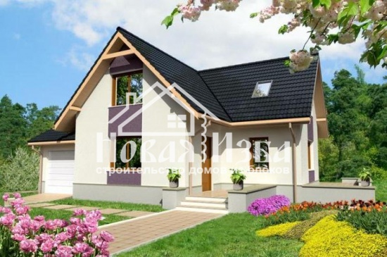 Кольмат - частный дом с мансардой этажа, 5 комнат, три спальни, гостиная с камином, гараж. Это дом можно построить из пенобетонных блоков. Расчитан на семью из четырех или  пяти человек.Дом имеет гараж связаныый с подсобным помещением и с залом. На мансарде яркая ванная комната и три спальни, одна из которых может функционировать как игровая комната - просторная детская.