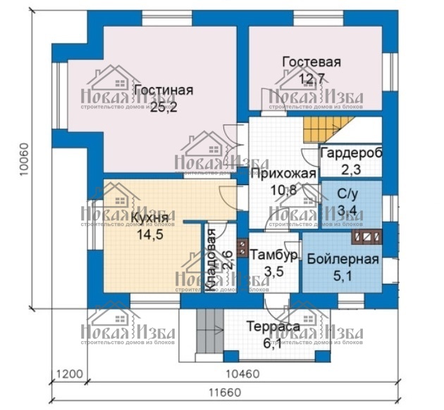 Типы конструкции стен, перекрытий и кровли могут быть изменены. Фундамент требует обязательной адаптации под участок застройки